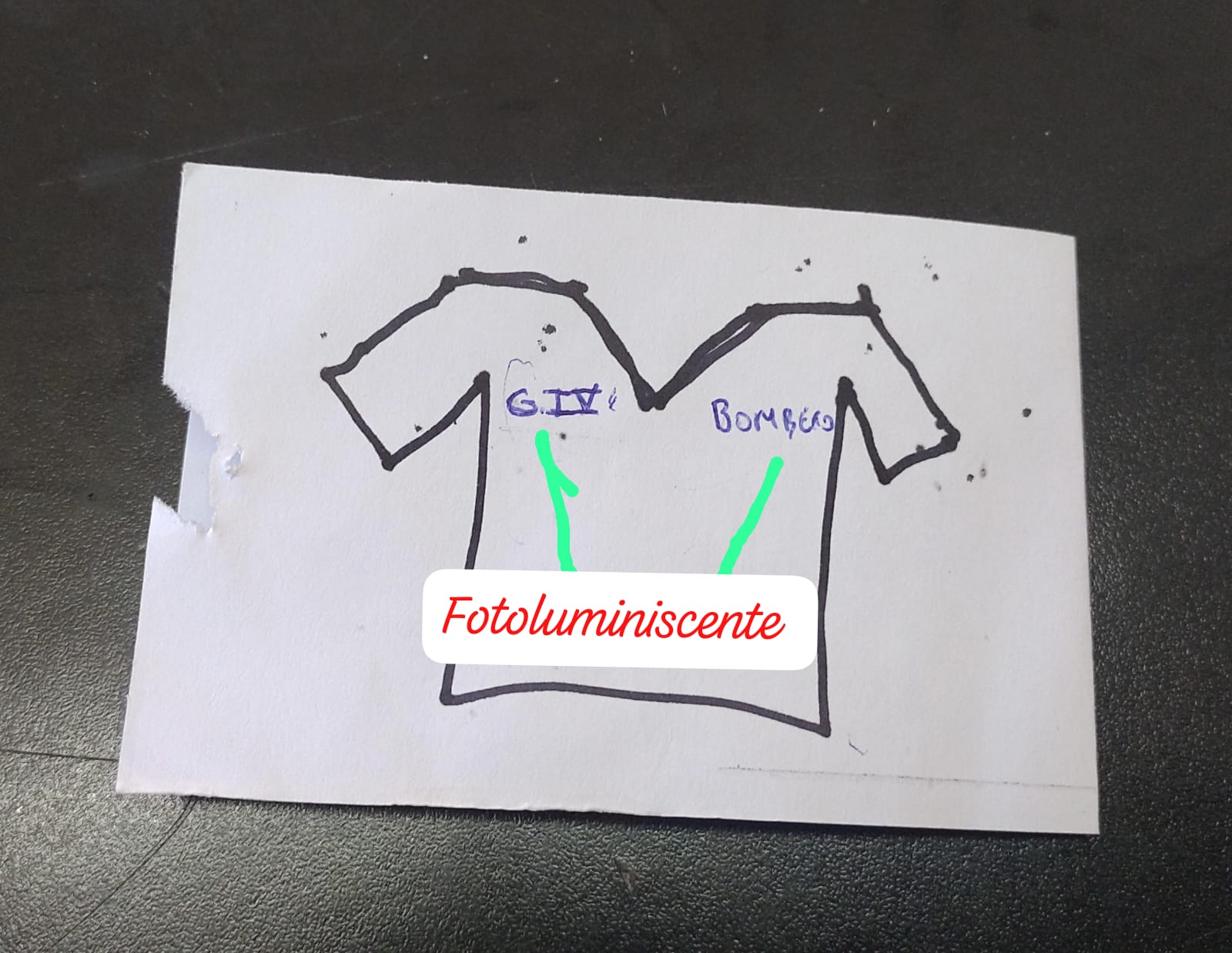 Modelo G IV Frente (Foto luminiscente) «G IV» y «BOMBERO Espalda (Rojo) «INCENDIO»